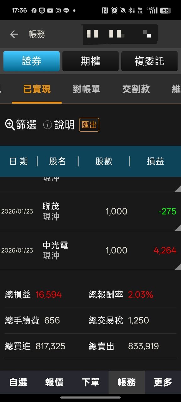 推 : 今日當沖賺5K 庫存-50K 救命呀28F 01/23 14:02