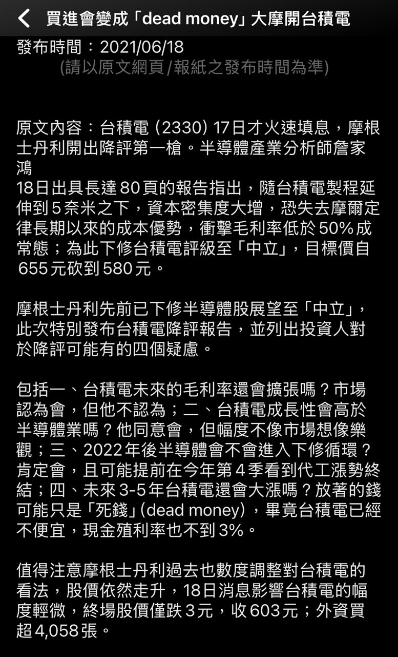 推 : 炒垃圾中小?台積電表示:3F 02/27 02:05