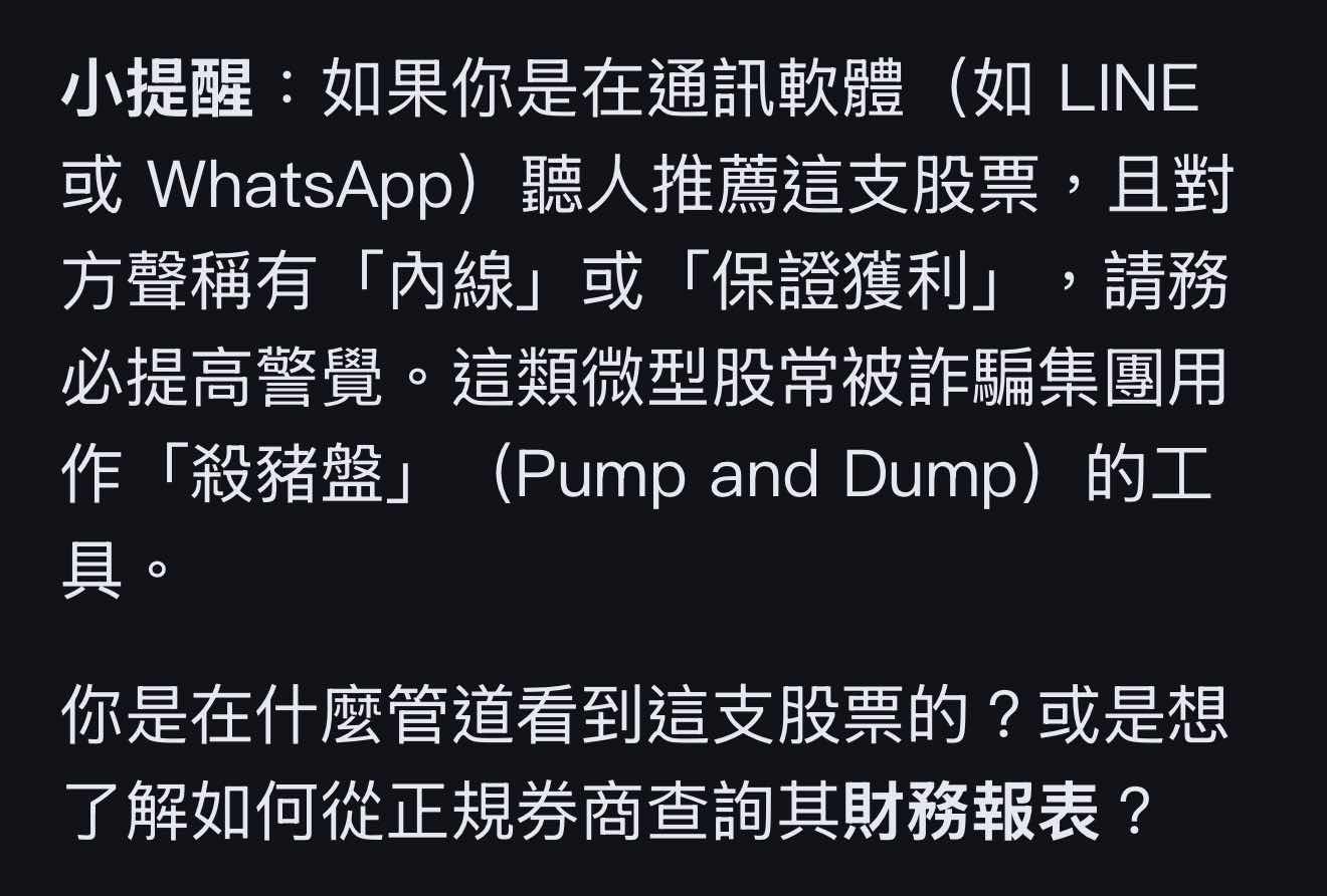 → : AI直接說這種股票有炒作詐騙的可能 建議不要投資