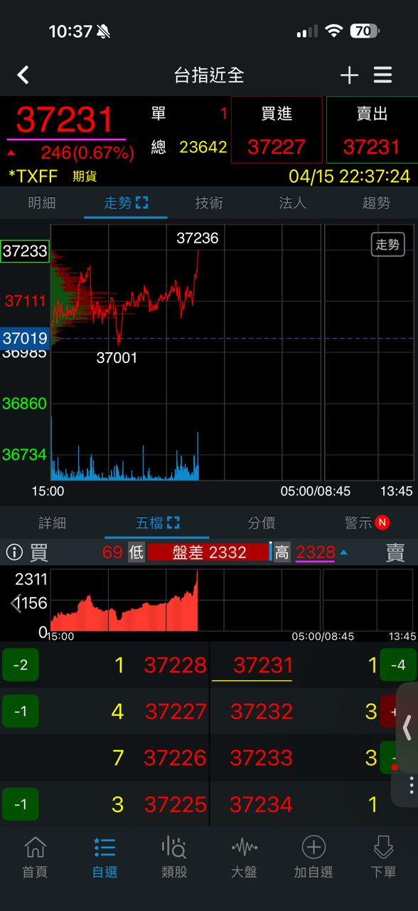 台指05 36977 ▲328 (+0.89%) 40,666口