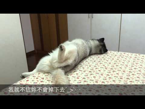 今天我在跟貓玩的時候,發現哈士奇跑上來睡在床鋪角角的位置。