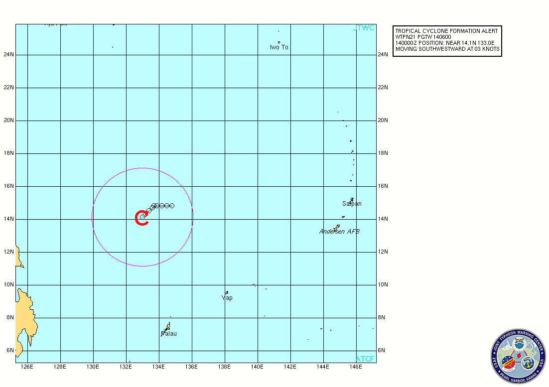 A 180 NM RADIUS OF 14.1N 133.0E WITHIN THE NEXT 12 TO 24 HOURS.