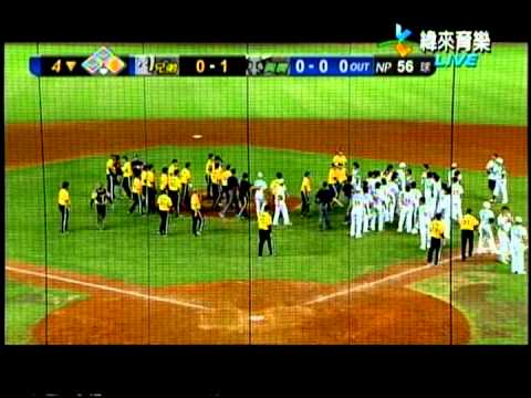 球員因此衝進來,陳江和生氣的到處走,被隊友抓緊,兩隊總教練相互開罵,象隊教練陳