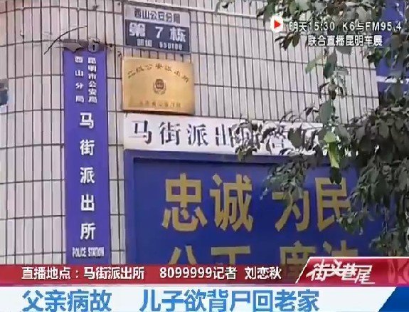 目擊者介紹,當天中午,西山區昆州路路邊有一名20歲出頭的年輕小伙,身後背著一個50歲出頭的男子,在路邊等車。 幾小時後,目擊者發現有殯儀車趕到現場,將小伙身後的男子搬入車內,其才明白這名小伙背的不是活人,而是一具屍體。