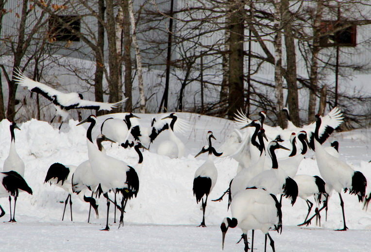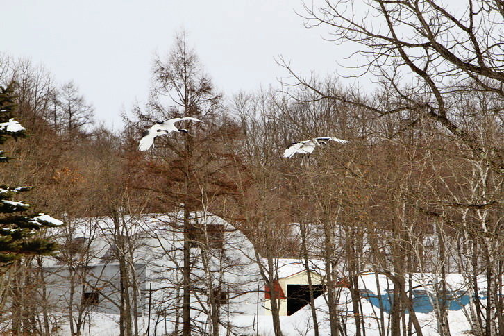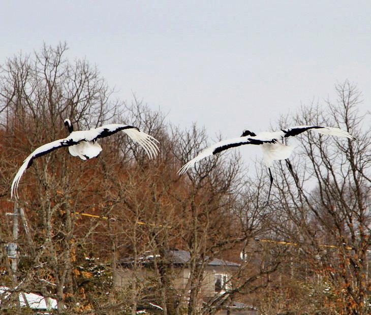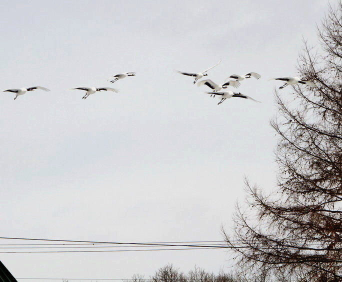 在鶴見台,沒有圍欄,沒有鐵網,丹頂鶴來去自由自在....