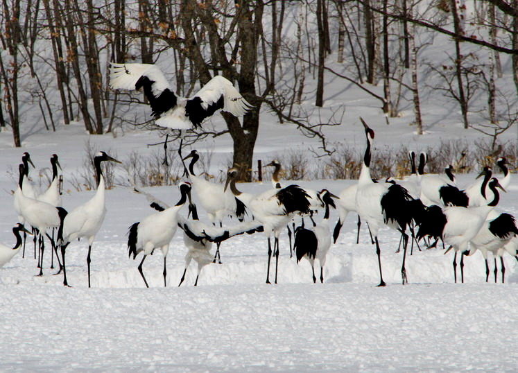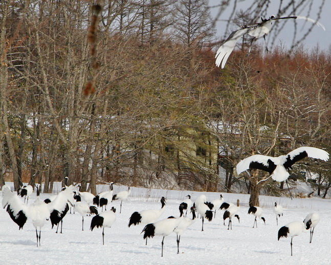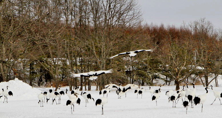 讓丹頂鶴食物充足度過嚴寒的冬天..