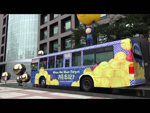 上星期去信義威秀看電影時就有發現路旁的廣場上在施工,原以為是豪宅人行道上的公共藝術,這天前往發現原來是幾米月亮公車。