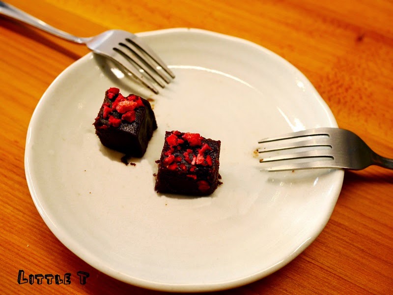 使用乾燥草莓果乾所磨碎的果乾,搭配甜甜的布朗尼,吃起來酸甜酸甜的,有種先酸後甜特別的口感,喜歡酸酸味道的人很推薦這款喔!!!