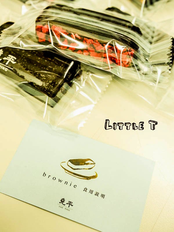 做好的一整條布朗尼切成一小小片的分裝,透明條文的包裝上也寫著堯平的字樣~