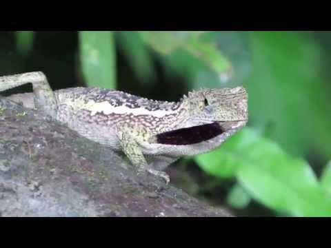 斯文豪氏攀蜥是台灣聖山-生態教育園區常見的蜥蜴,其最大的特色就是遇到周邊有狀況,就會做出伏地挺身的動作來嚇阻敵人。這天,下過雨的午後,兩隻斯文豪氏攀蜥跑出來玩,搭配背景的鼓聲,很像是恐龍大戰。