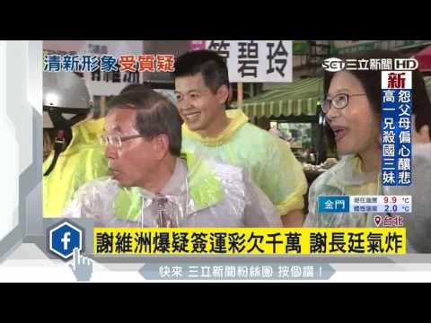 謝維洲遭爆簽賭輸千萬 父謝長廷咒罵:去死|三立新聞台 - YouTube 台北市議員謝維洲簽運動彩券驚爆負債近千萬,他的父親駐日代表謝長廷知道後大發雷霆,咒罵他,母親親自從日本飛回台灣幫忙善後。平面媒體報導,謝維洲去(2015)年底開始奔走借錢,連議員專用的富邦兩百萬低利貸款都用上還是還不完,雖然強調是合法運動彩券,但一般運彩欠到千萬並不容易,是不是內情不單純,謝維洲說是以前的事情了,...