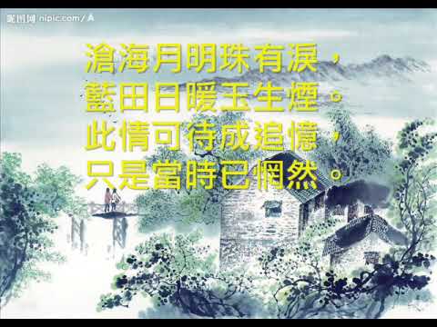 錦瑟 (李商隱) 錦瑟無端五十弦,一弦一柱思華年。 莊生曉夢迷蝴蝶,望帝春心託杜鵑。 滄海月明珠有淚,藍田日暖玉生煙。 此情可待成追憶,只是當時已惘然。
