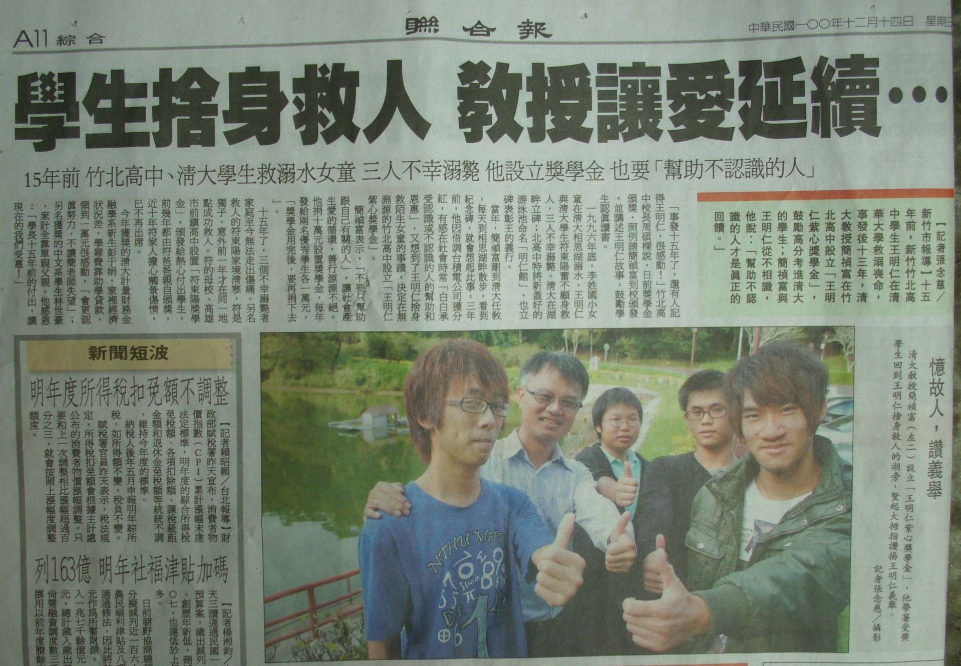 仁,在清華大學見義勇為救溺水的國小李姓女童,和女童及另位同樣