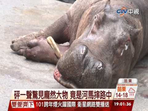 【中視新聞】 跳車撞斷牙 "阿河"癱坐馬路痛到哭 20141226 - YouTube 苗栗苑裡鄉間道路上,突然出現兩公尺長的大河馬,原來飼養的牧場,因為改建水池,把河馬移到通霄安置,但是途中大河馬似乎受驚嚇,從透氣窗跳出來,還撞斷牙齒,痛到流淚!