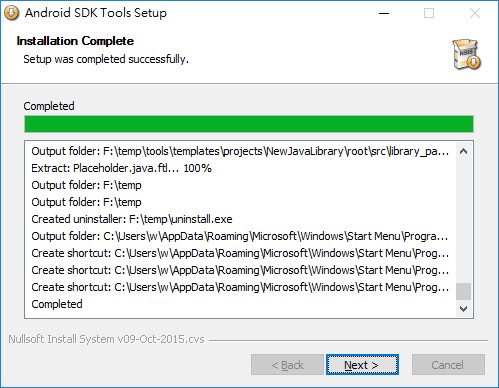 12.Android SDK Platform-tools 安裝完成,出現「Installed」