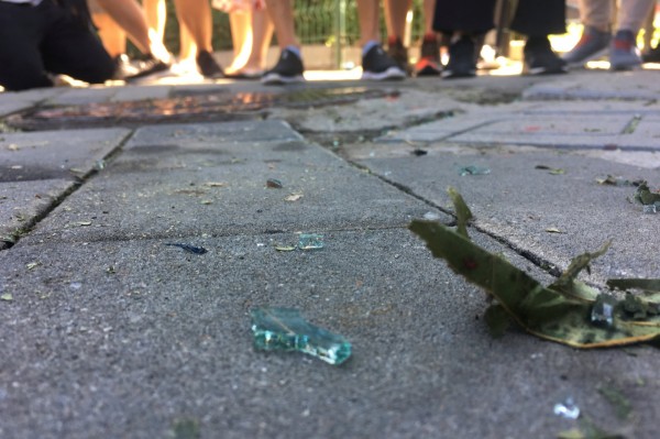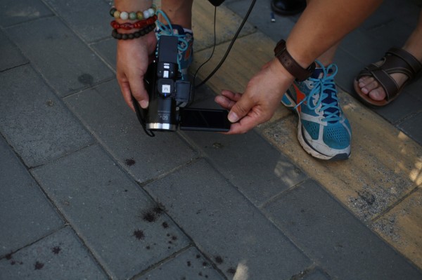 爆炸發生後,美使館外人行道上可見血跡以及火藥痕跡,當地正迅速進行爆炸現場的清掃