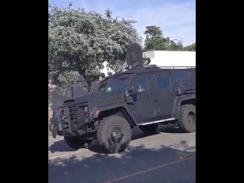 @BenjaminNortonHere are US cops in California in a massive military armored vehicle threatening to run over and kill protesters