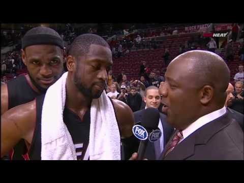 LeBron makes a funny face during Ray Allen's post-game interview following the Miami Heat's 108-94 win over the Orlando Magic for their 27th straight win. Le...