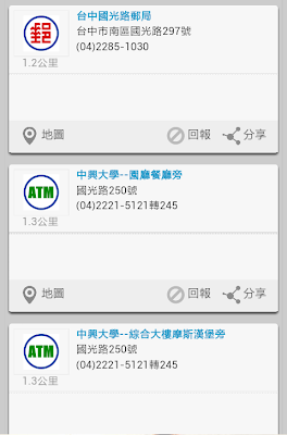 「3秒找郵局」:提供最近的郵局&ATM資訊,包含客服電話(提款機也是有電話的呦)