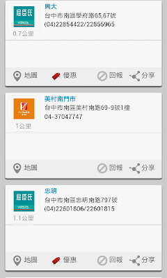 「3秒找速食」:提供最近的便利商店資訊,7-11與全家會另外提供手機版優惠連結,萊