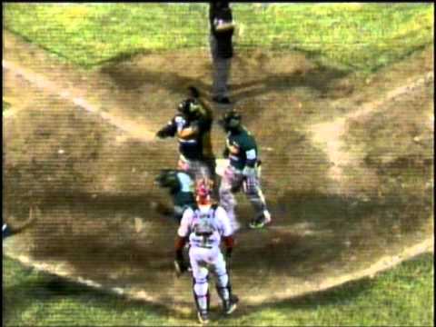 El primera base Sandy Madera de Cañeros de Los Mochis batea un cuadrangular con bases llenas ante los Mayos de Navojoa. Jugando en el Estadio Manuel "Ciclón"...