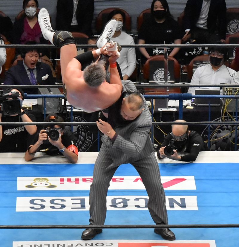 然而被摔得這位是三森すずこ的老公-オカダ・カズチカ