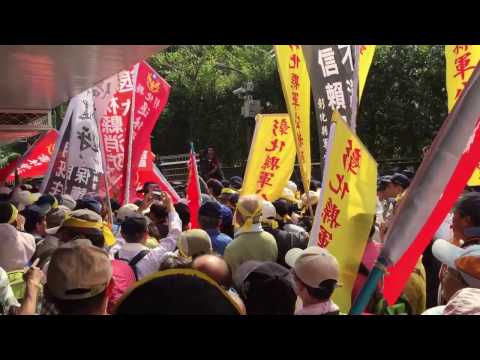 中國統派把拒馬搬開,後面抗議的老杯杯就跟著進去了