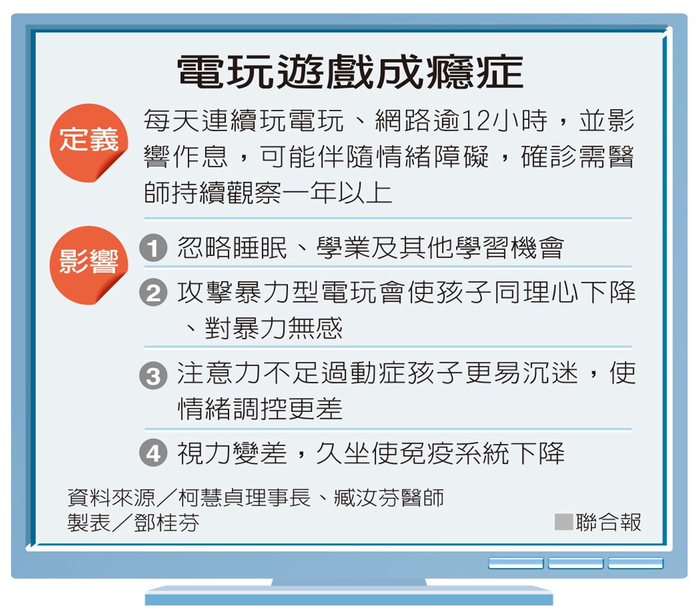 世衛將通知各國提出成癮防治對策;衛福部表示,我國已將電玩成癮視為精神