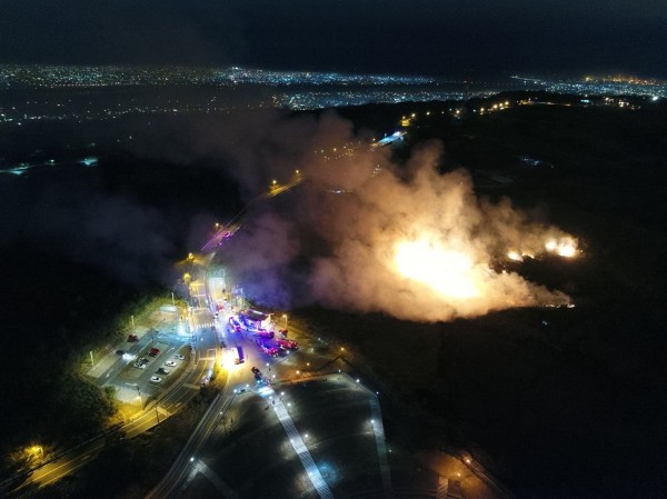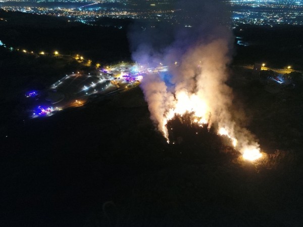 午南屯區中台路望高寮觀景台旁起火,而且起火點有2處,範圍達12公頃,火勢猛烈,數