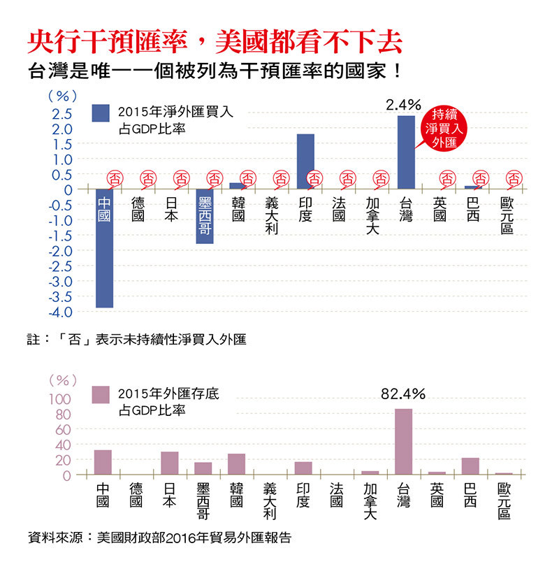 貿易夥伴中,「唯一」進行匯市干預的國家,未來不排除對台祭出貿易制裁