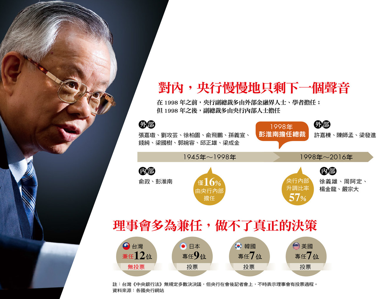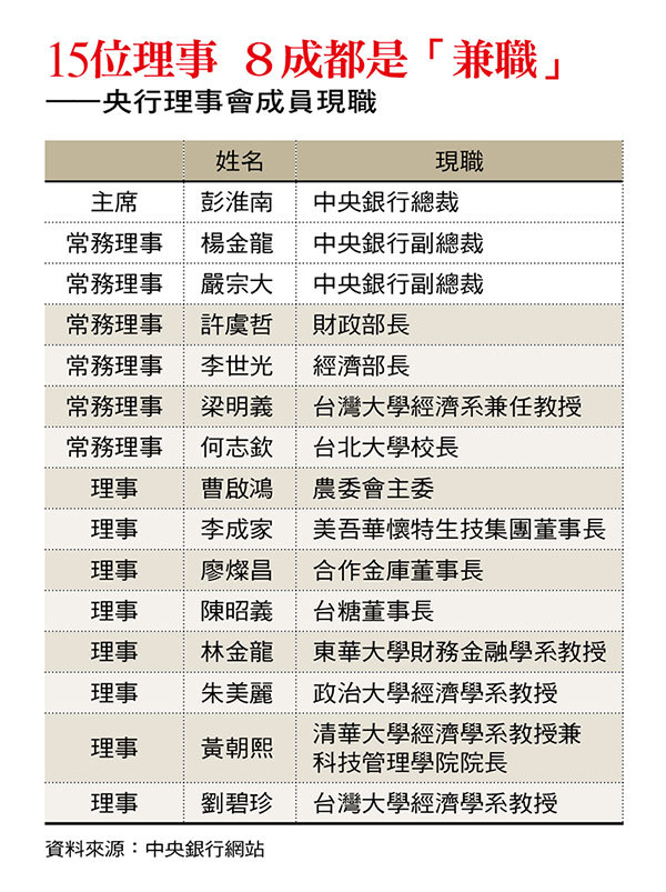 “目前台灣央行的理事會成員都是兼任,真正專任的,只有總裁和副總裁。