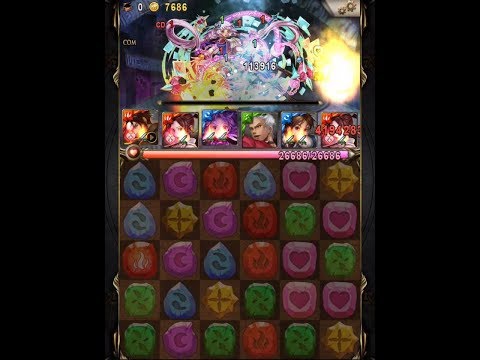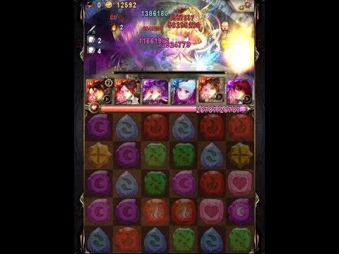 R2開圖靈轉全體 R3第一回合先靠盤面的心珠去打一波,盡量留住盤面的水火珠