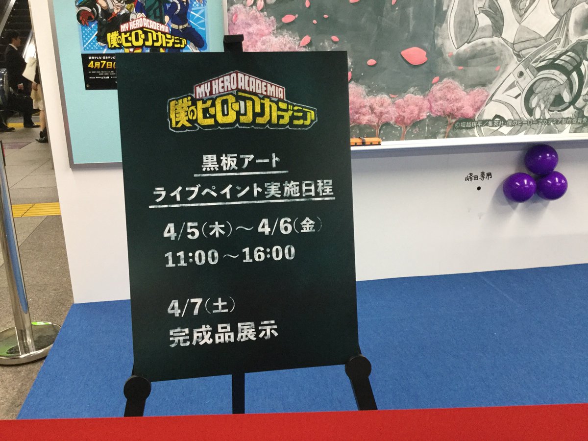 秋葉原駅でヒロアカの黒板アートやってるしゅごい