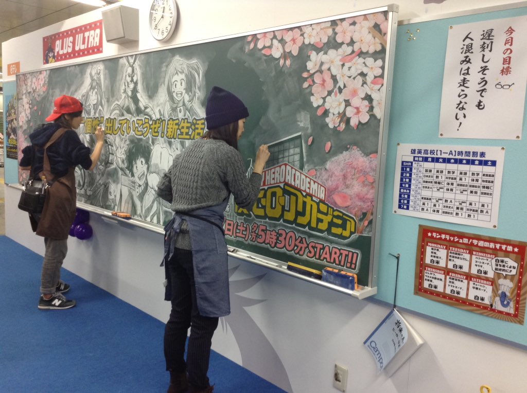 秋葉原の駅でヒロアカの黒板アートやってた!!凄い!!