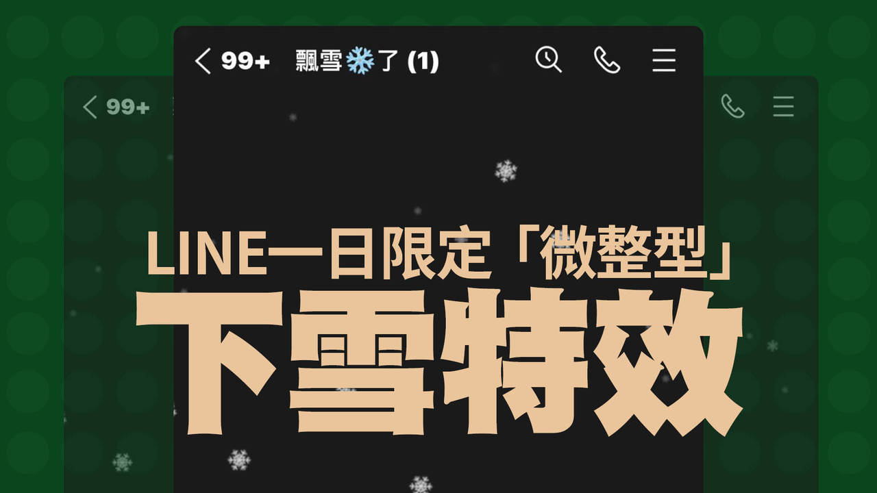全台外頭冷到變成「冰蕃薯」,裡頭的LINE聊天室也迎接「1日限定」的飄雪特效,而且電腦版與手機版的下雪時間不同,加上這次的飄雪似乎改頭換面,讀者們不曉得有沒有發現呢?