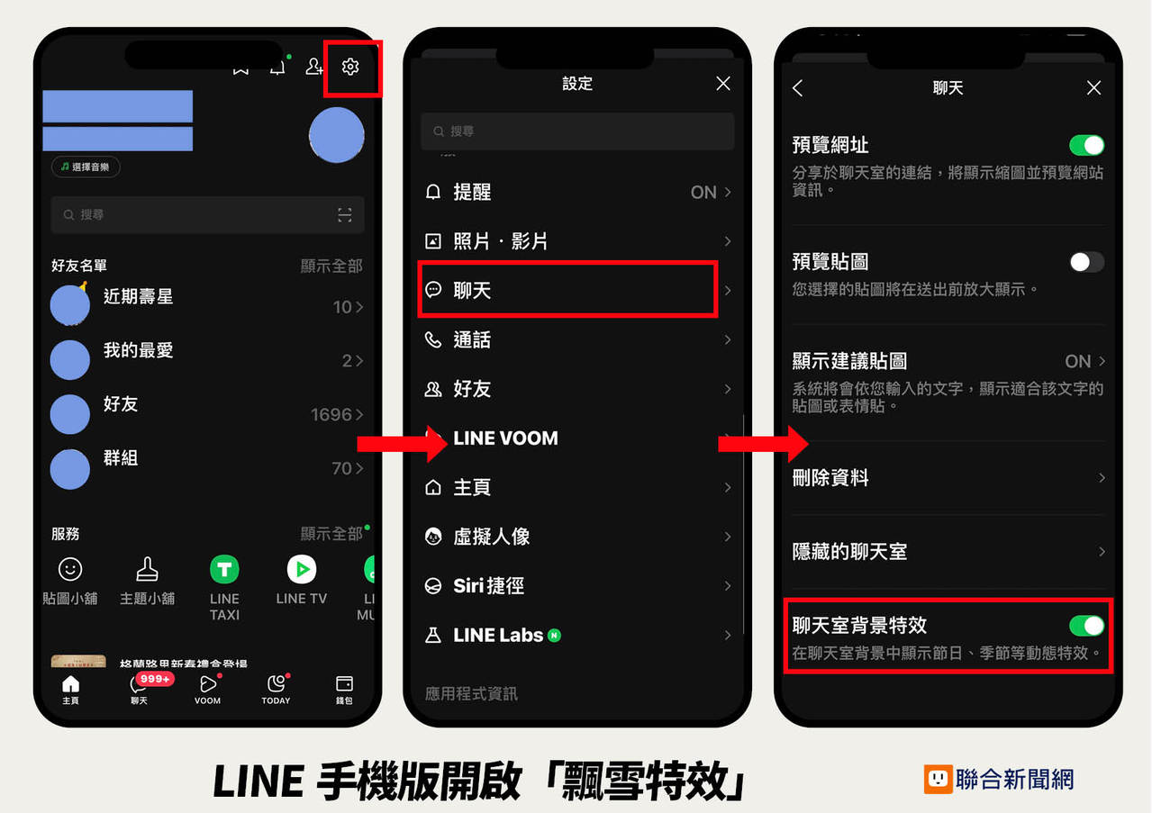 LINE手機版開啟背景特效方法。(製圖/聯合新聞網)