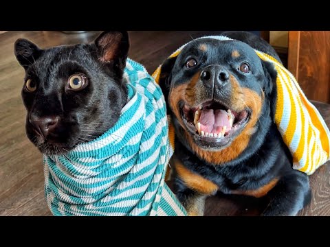 Bath day for Venza rottweiler and Luna the panther🚿🛀🧽 - YouTube
