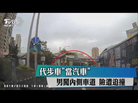 20180202中天新聞 電動代步車突竄 騎士為閃他反遭追撞 - YouTube 一名重機騎士,在路口遇到電動代步車,無預警從路肩,連切兩個車道左轉,重機騎士雖然及時停下,沒撞上去,卻被後車追撞倒地,開電動代步車的阿伯,還若無其事要離去,騎士氣得當街攔車,質問阿伯,為什麼過馬路無視其他車輛,沒想到阿伯只說一句「快到沒看到車」,警方也表示「電動代步車算是行人,有絕對路權」令騎士傻眼,質疑有哪個行...
