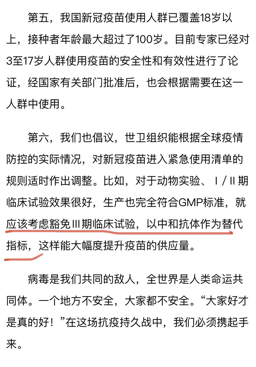 國際科學標準 只看抗體濃度評價就給EUA-> 這也是中國人呼籲的