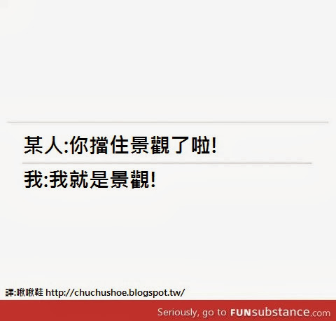 :不過我可能會翻成"美景" 聽起來比較靠北XD