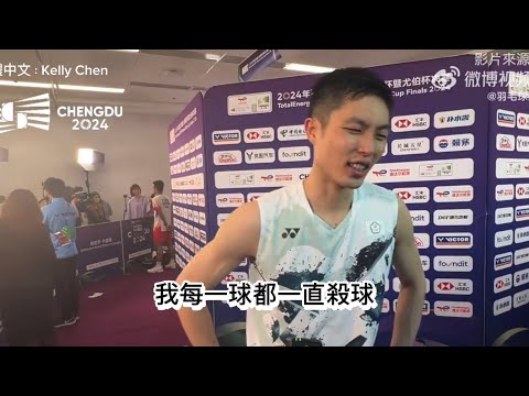 以21:19、14:21、21:19扳倒世界球王安賽龍,助台灣隊先馳得點,賽後他表示,自己