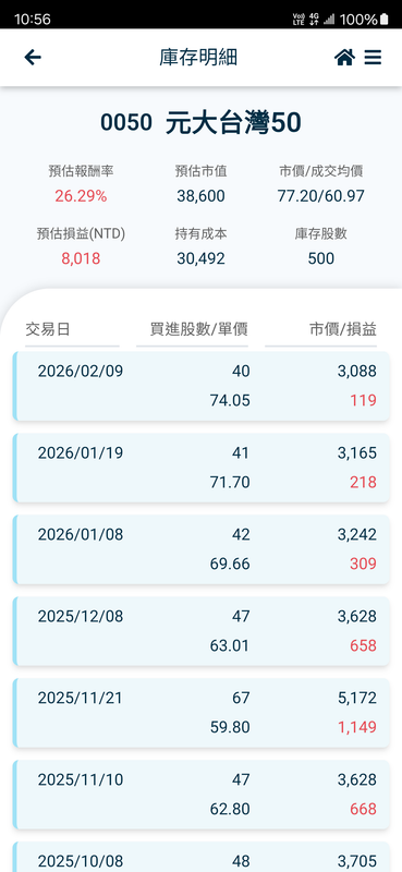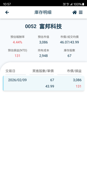 備註:即使不是利用定期定額,而是自己手動買入的零股一樣會顯示在NNB的台股
