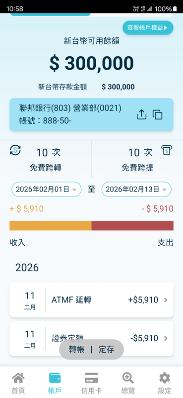 再去開一個實體帳戶設定大額約轉給數帳用就解決了29F 02/13 22:03