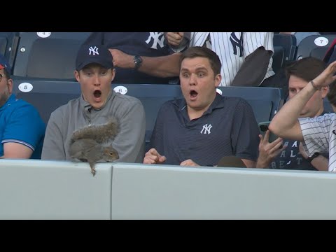 Squirrel goes NUTS at Yankee Stadium, scurries across outfield fence!!!