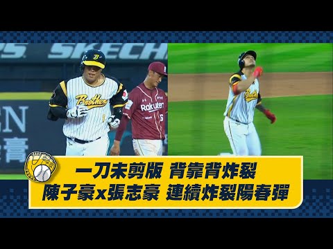 陳子豪、張志豪五局下一棒過牆,幫助球隊再攻下兩分。