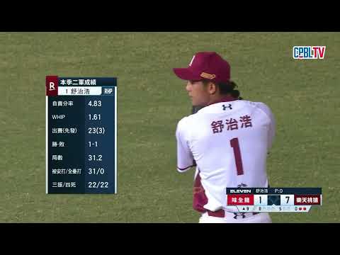 2022年季中選秀樂天桃猿第8輪指名,二軍k/bb來到1,控球需要再加強,今天一軍新開箱,直球145km,彈指曲球位置控得不錯,期待未來成長