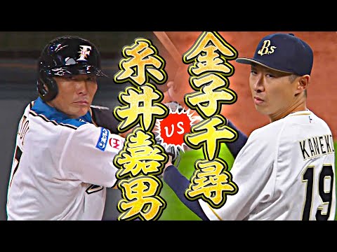 第一打席是金子再次穿上歐力士球衣對決火腿球衣的糸井,內野高飛接殺