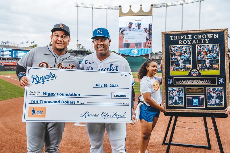 底特律老虎準名人堂球星Miguel Cabrera在堪薩斯皇家主場生涯最終戰,主隊不僅捐給以