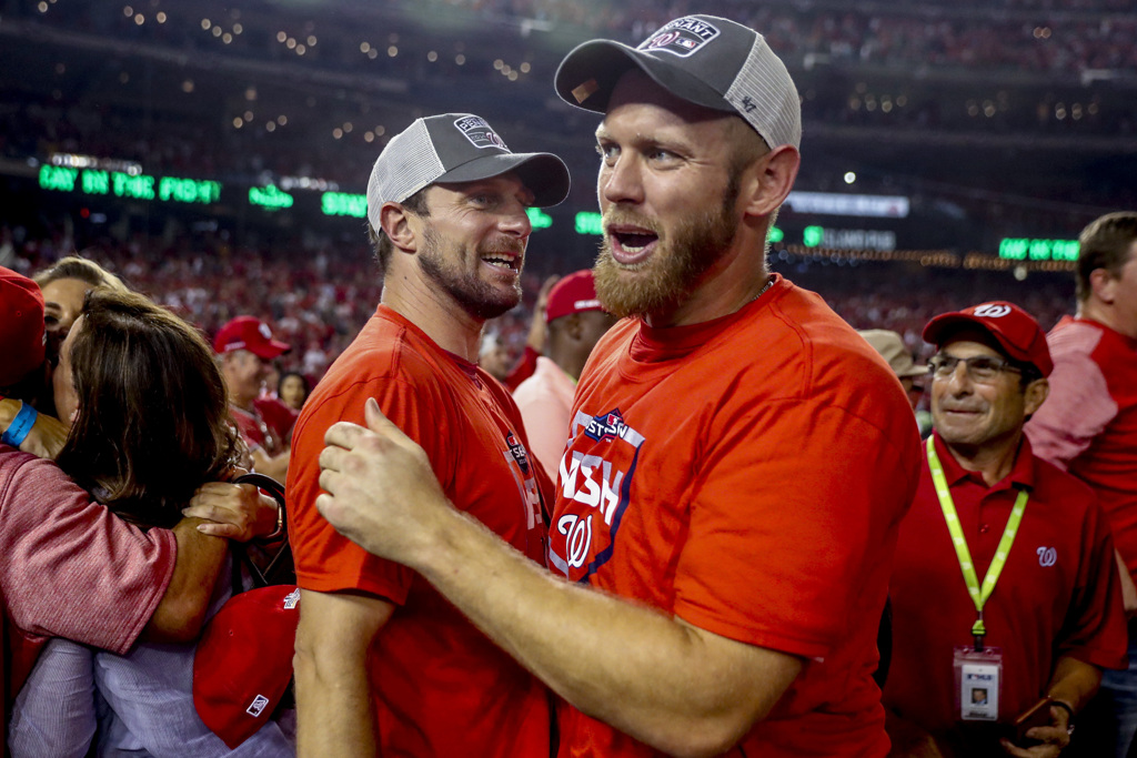 國民靠著雙王牌薛神(左)、史崔斯柏格(右)打天下,拿下2019年世界大賽冠軍。(美