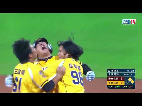 安打追平比數,曾頌恩從陳禹勳手中纏鬥到第10球,敲出再見左外野安打逆轉贏球。